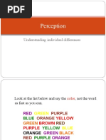 Figure-ground-figure is in focus Perceptual constancy- Tendency to stabilize perceptions so that contextual changes do not affect them. Helps to perceive similar problems with same perspective even if context changes.