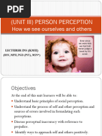 Selective perception-tendency to choose information that supports our viewpoint Stereotyping-generalization about a group of people First impression Projection that others are similar to us and that they have similar beliefs, values etc. Halo Effect