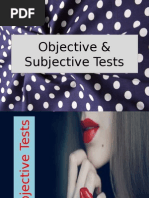 Subjective tests have the advantage of measuring the language skills naturally, almost the way English is used in real life. However, many teachers are not able to score such tests quickly and consistently. Essay writing can be used as a clear example for subjective tests.