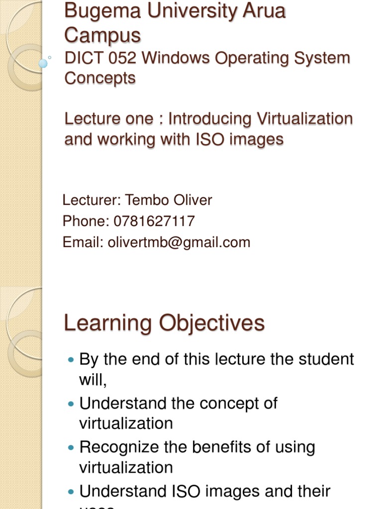 DICT 052 Windows Operating System Concepts Lecture one : Introducing Virtualization and working with ISO images