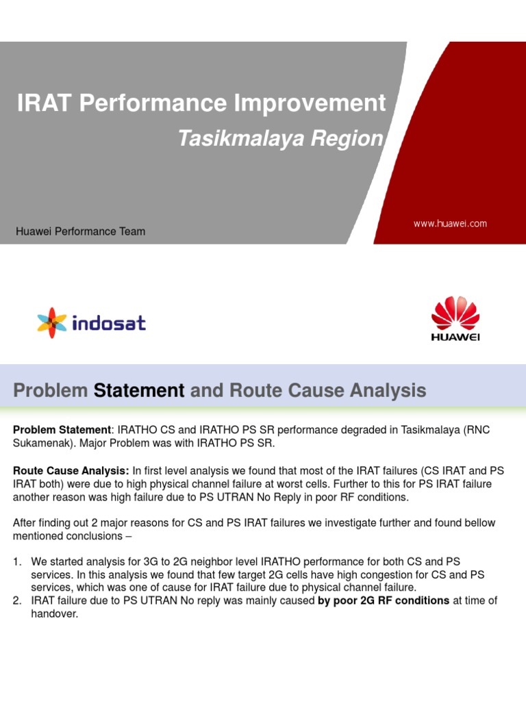 Route Cause Analysis: In first level analysis we found that most of the IRAT failures (CS IRAT and PS