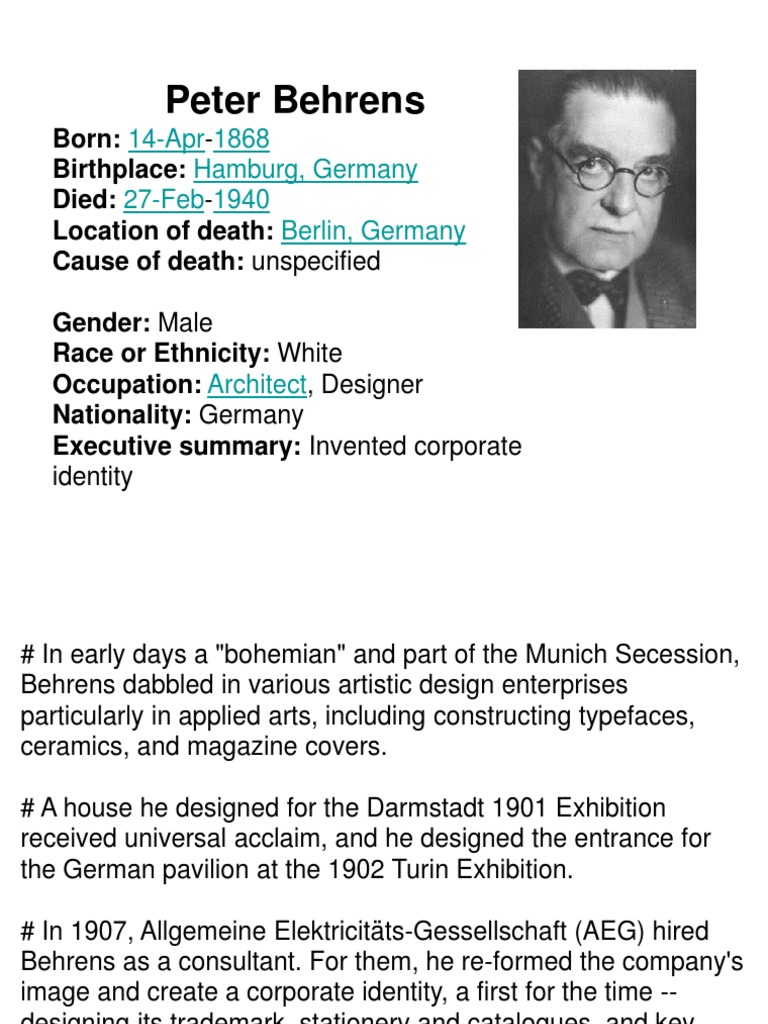 # In 1907, Allgemeine Elektricitts-Gessellschaft (AEG) hired