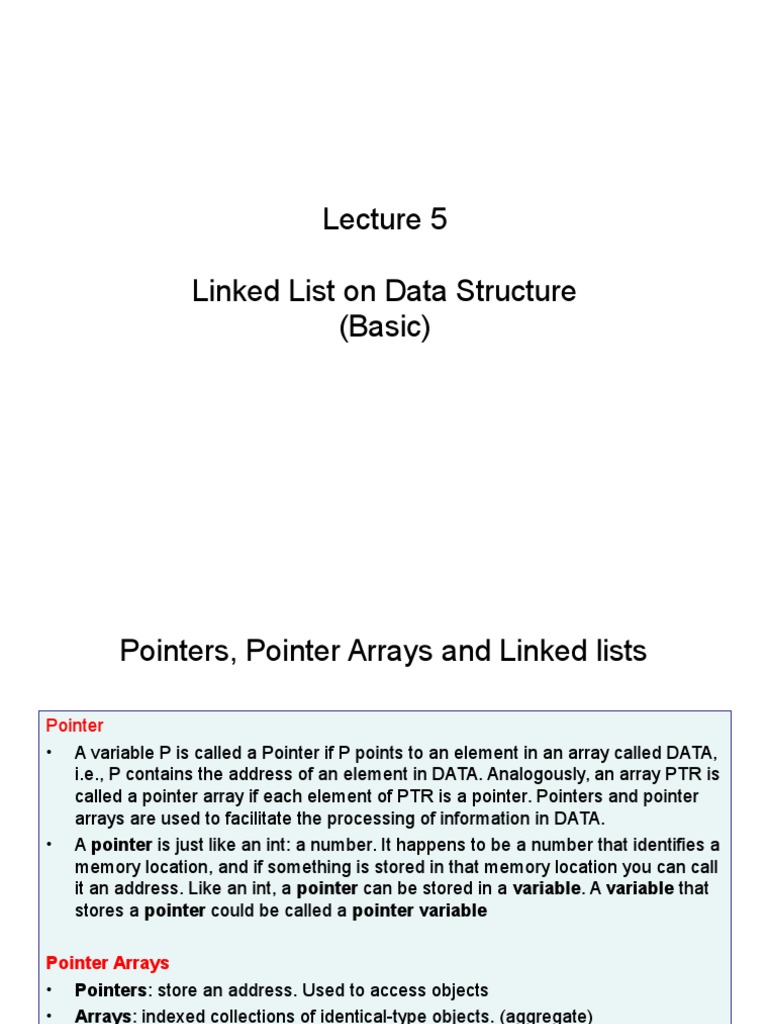 Pointers, Pointer Arrays and Linked lists