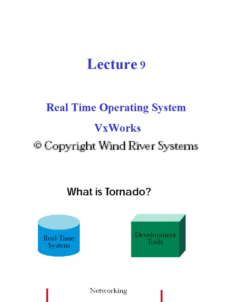 This document provides an overview of key components of the VxWorks real-time operating system, including multitasking, memory management, semaphores, I/O systems, and intertask communication capabilities. Multitasking allows multiple tasks to run simultaneously, memory management handles allocation and deallocation of memory, semaphores are used for synchronization between tasks, the I/O system manages input and output, and intertask communication enables tasks to exchange information and messages.