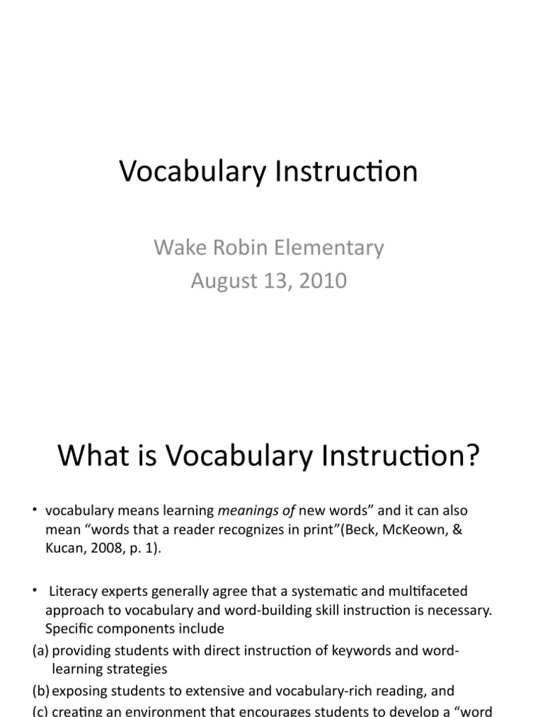 • (Beck, McKeown & Kucan, 2002; Carey, 1978)