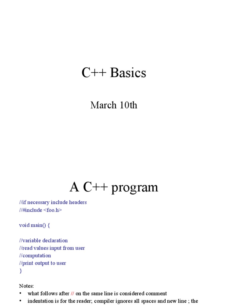 • indentation is for the reader; compiler ignores all spaces and new line ; the