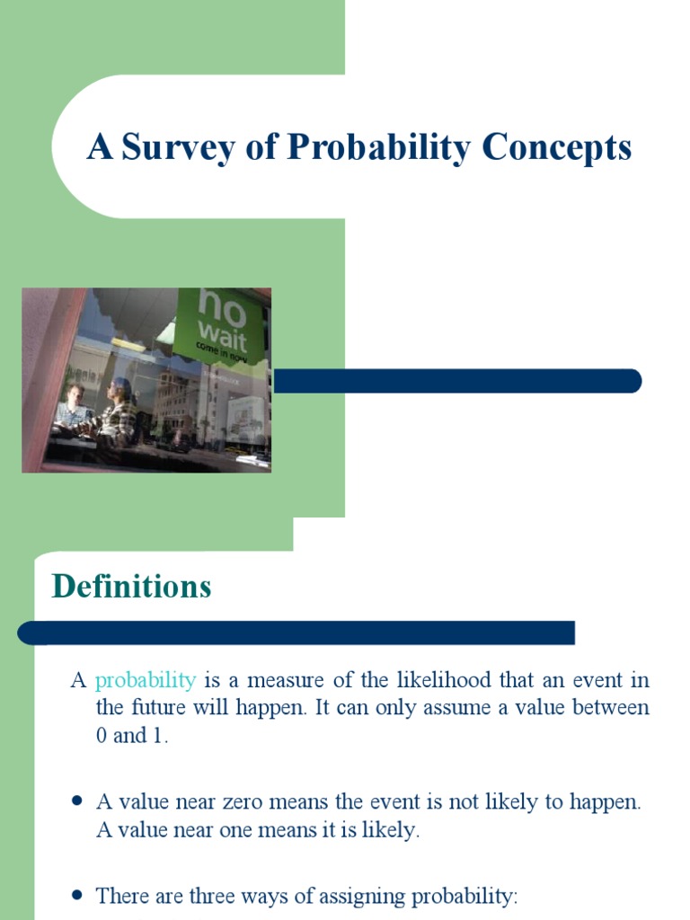 P( A1 ) = 5/365 =0.0136985 [It rains 5 days out of the year.]