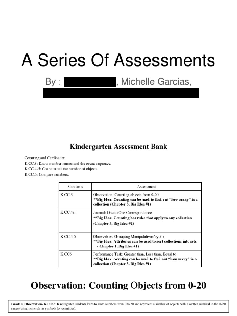 Grade K : Observation - K.CC.4-5 Counting and Cardinality- Kindergarten students will be learning