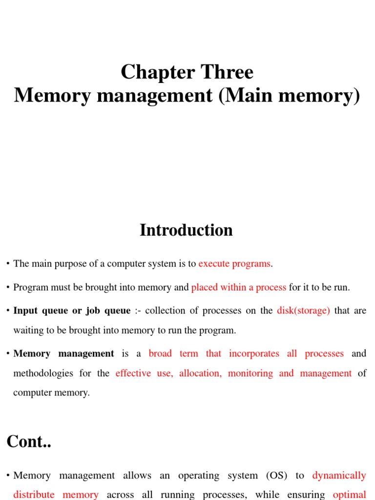 • Therefore need to allocate different parts of the main memory in the most efficient