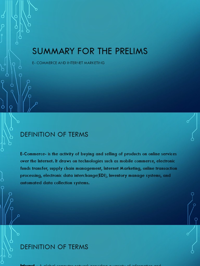 over the Internet. It draws on technologies such as mobile commerce, electronic