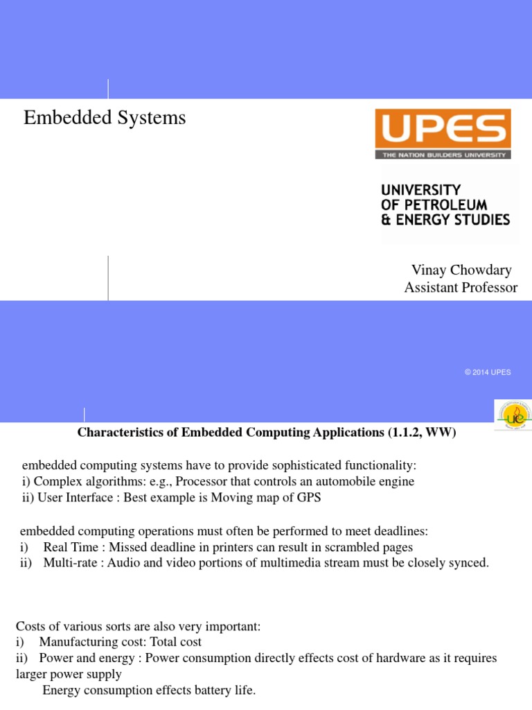 Characteristics of Embedded Computing Applications (1.1.2, WW)