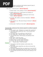 Direct Speech Indirect/Reported Speech
