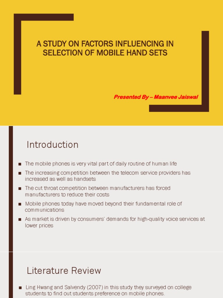 details of consumers’ choice criteria for mobile phones in Guntur. The researchers used the