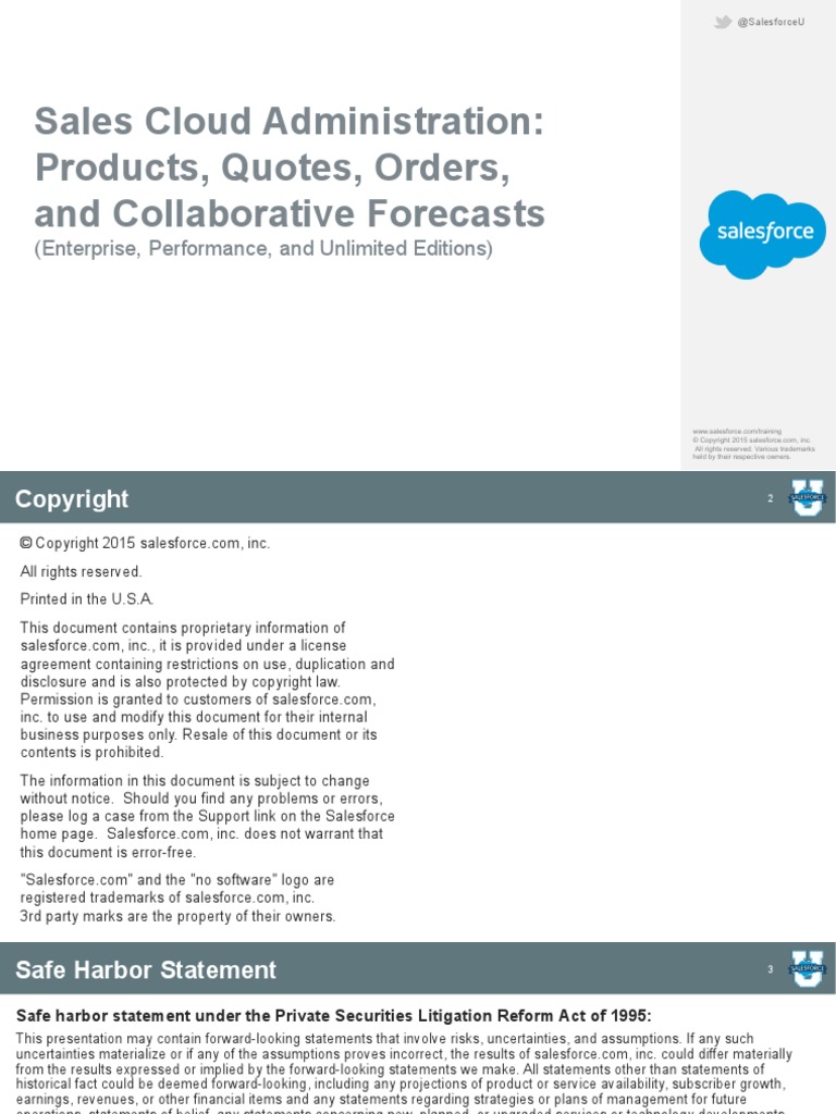 Sales Cloud Administration: Products, Quotes, Orders, and Collaborative Forecasts