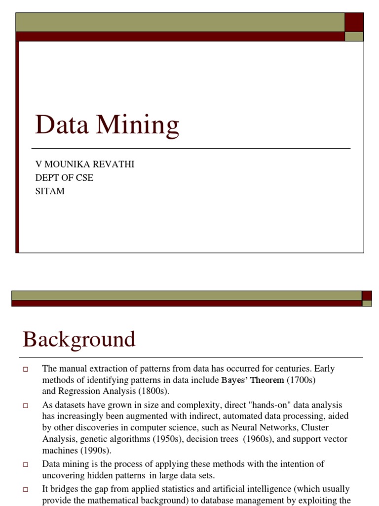 methods of identifying patterns in data include Bayes’ Theorem (1700s)