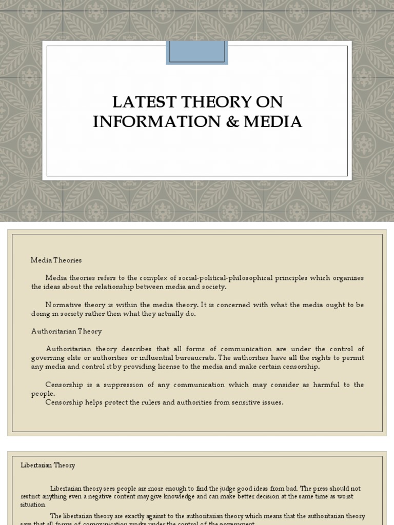 Libertarian theory or free press theory says that media is given the absolute freedom to publish anything at any