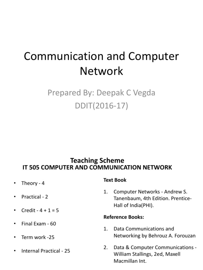 IT 505 COMPUTER AND COMMUNICATION NETWORK
