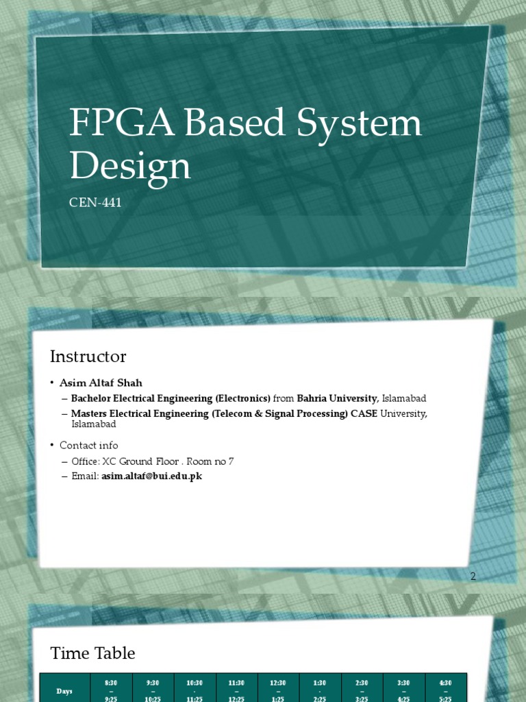 • Introduction to need of FPGA and FPGA based System Design Flow.