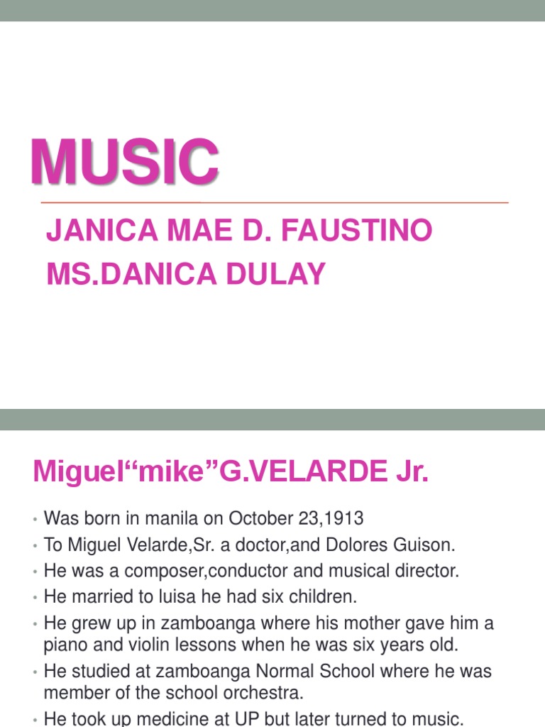 • To Miguel Velarde,Sr. a doctor,and Dolores Guison.