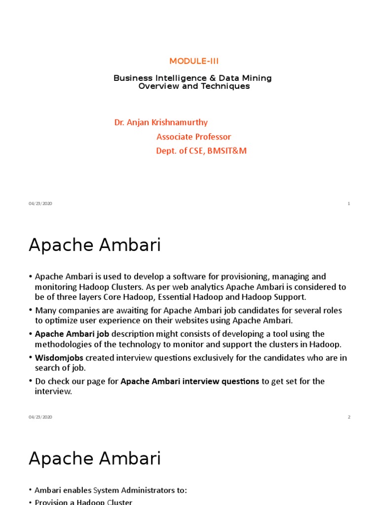 • Many companies are awaiting for Apache Ambari job candidates for several roles
