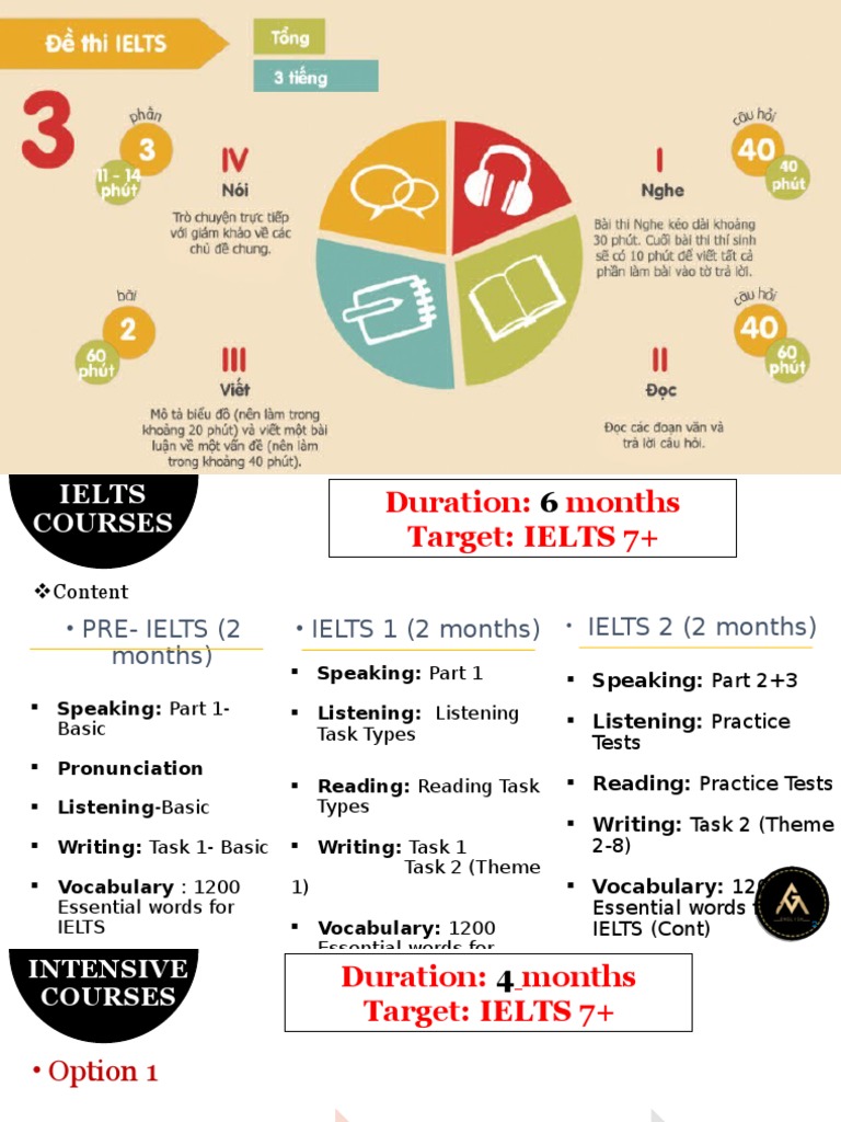 • PRE- IELTS (2 • IELTS 1 (2 months) • IELTS 2 (2 months)