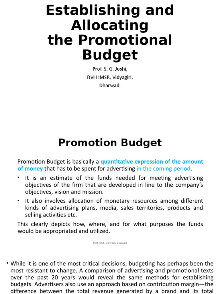 Market share Method The budget amount is decided on the basis of retaining the same or increasing the