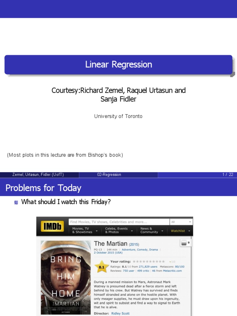 Zemel, Urtasun, Fidler (UofT) 02-Regression 1 / 22