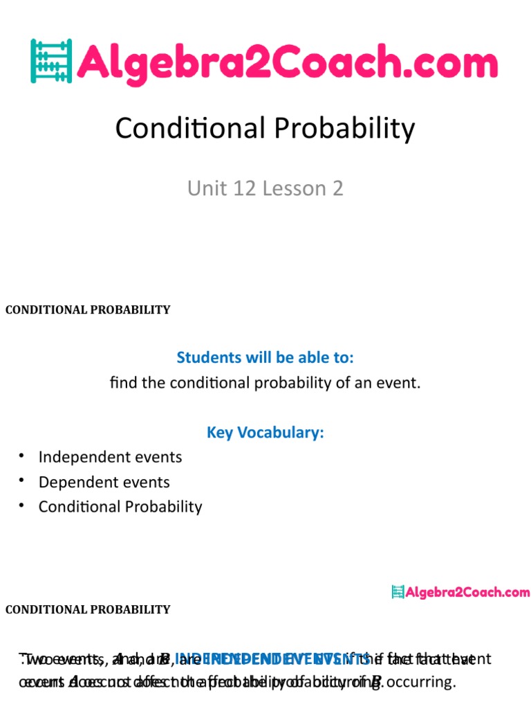 • Selecting a ball from a jar, not replacing it, and then selecting a