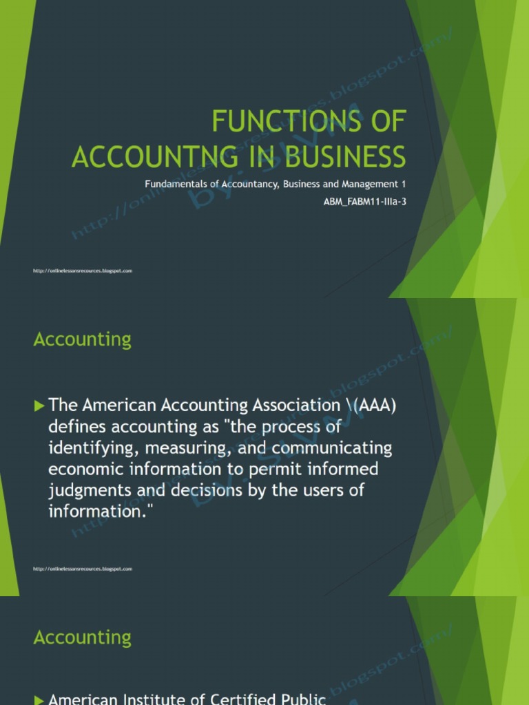 FUNCTIONS OF ACCOUNTNG IN BUSINESS