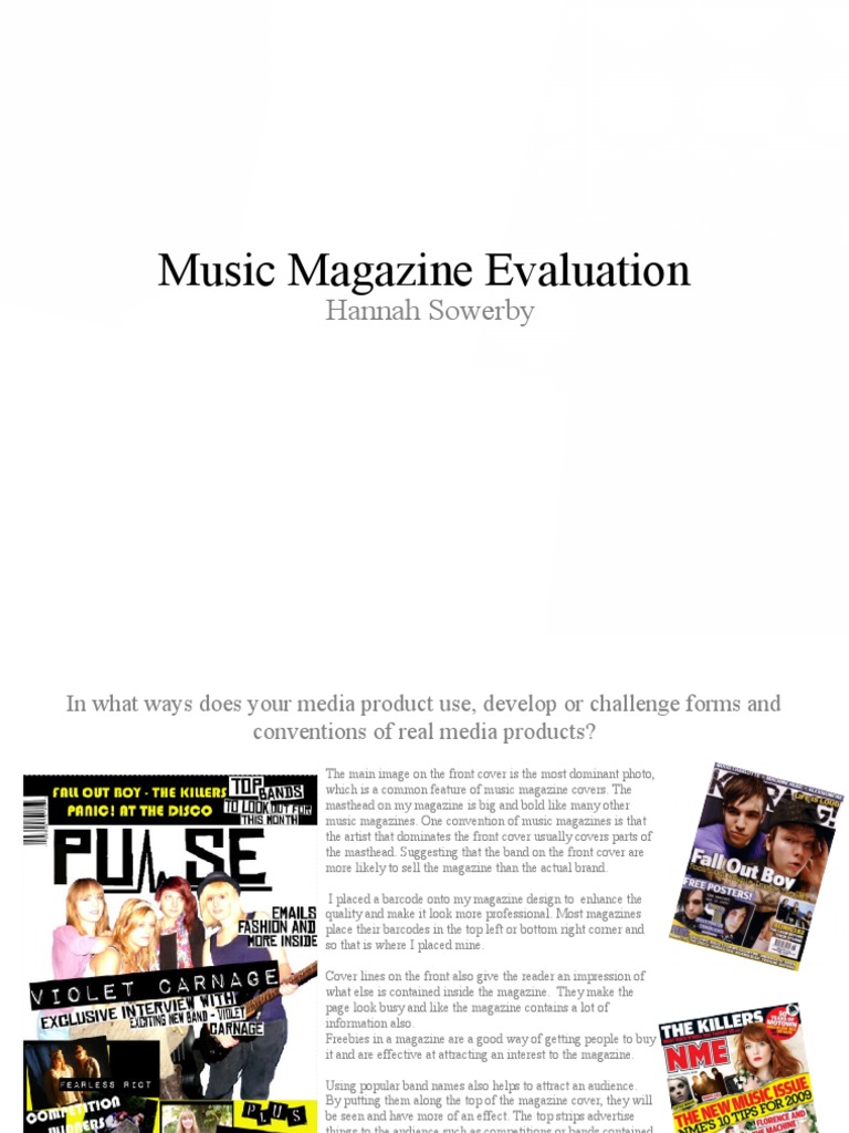 task, my music magazine looks more professional than the first one, because of the range of techniques that I learnt