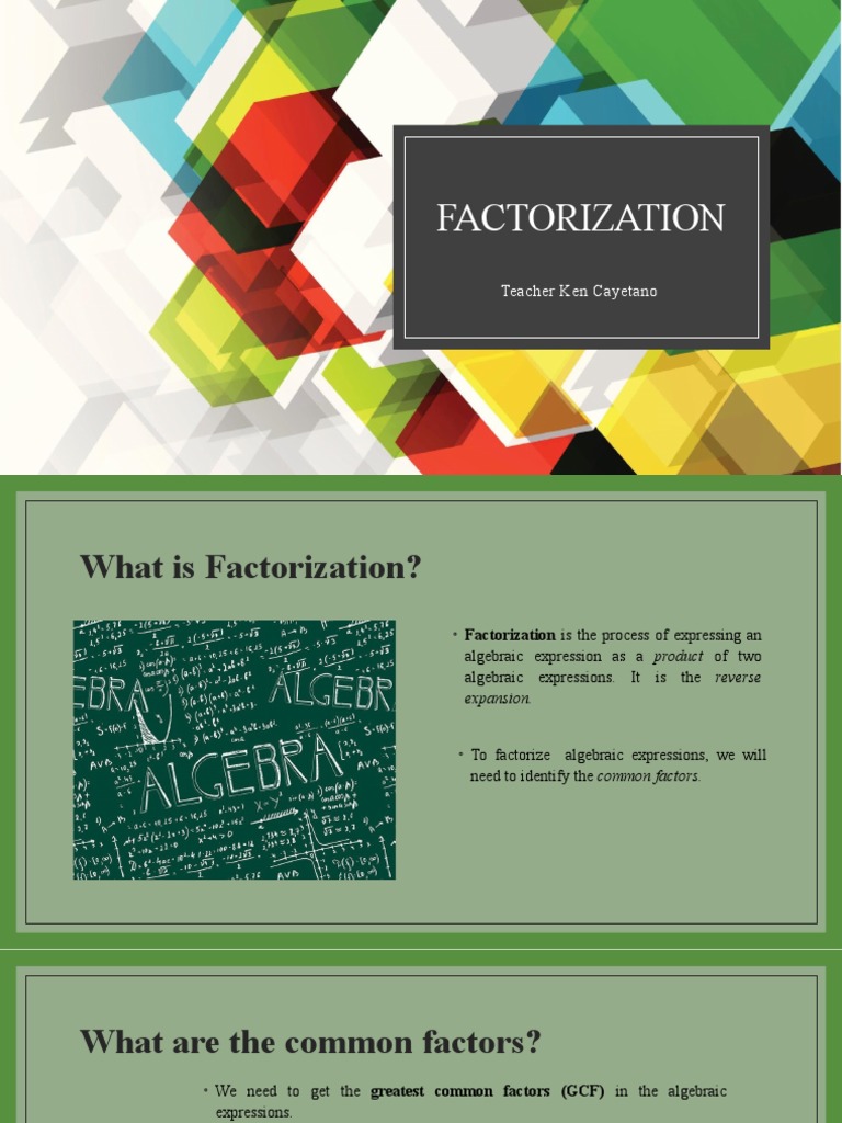 ◦ We need to get the greatest common factors (GCF) in the algebraic