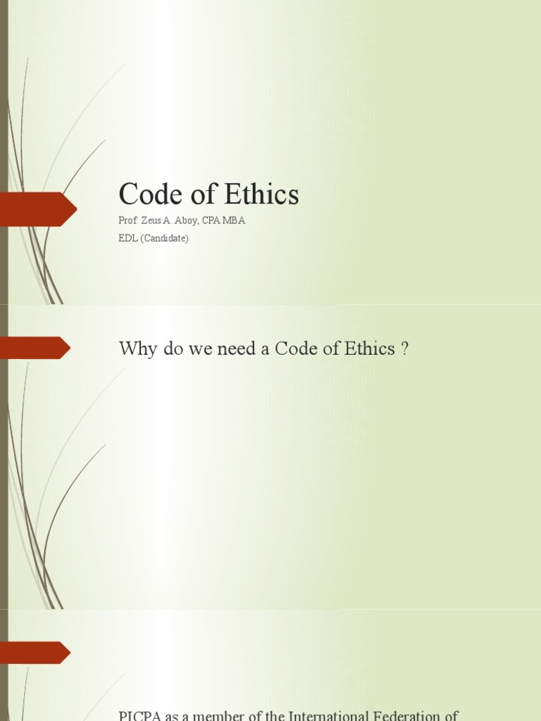 This Code of Ethics for Professional Accountants (Code) in the Philippines is basedon the