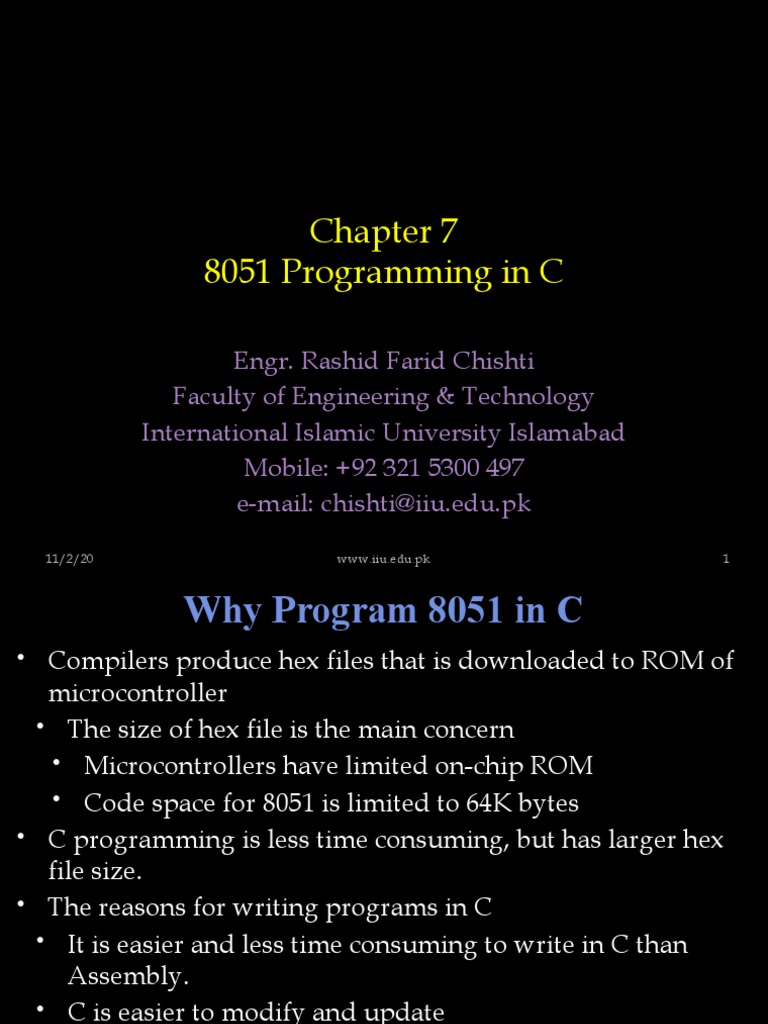 Example 7-6: Write an 8051 C program to toggle bits of P1 continuously