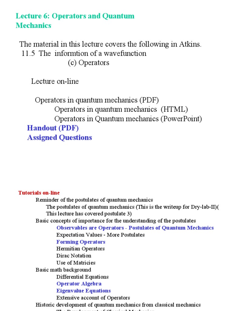 Postulates of Quantum mechanics (HTML) (simplified version from Wilson)