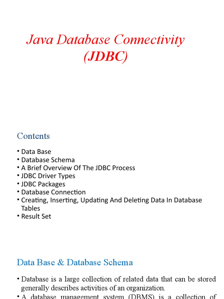 • The JDBC API defines the Java interfaces and classes that programmers used to connect