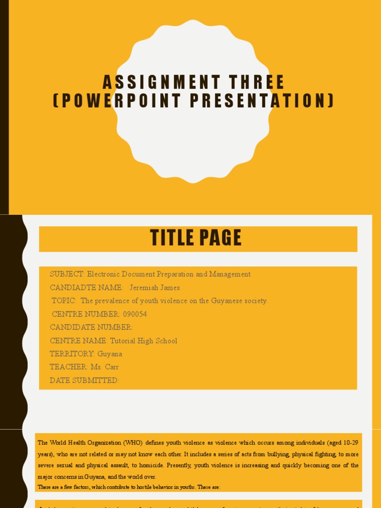 TOPIC: The prevalence of youth violence on the Guyanese society.