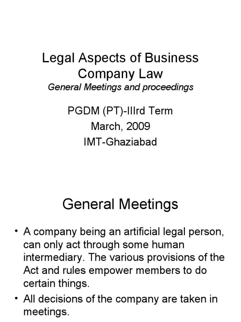 • Requisites of a valid meeting: It must be