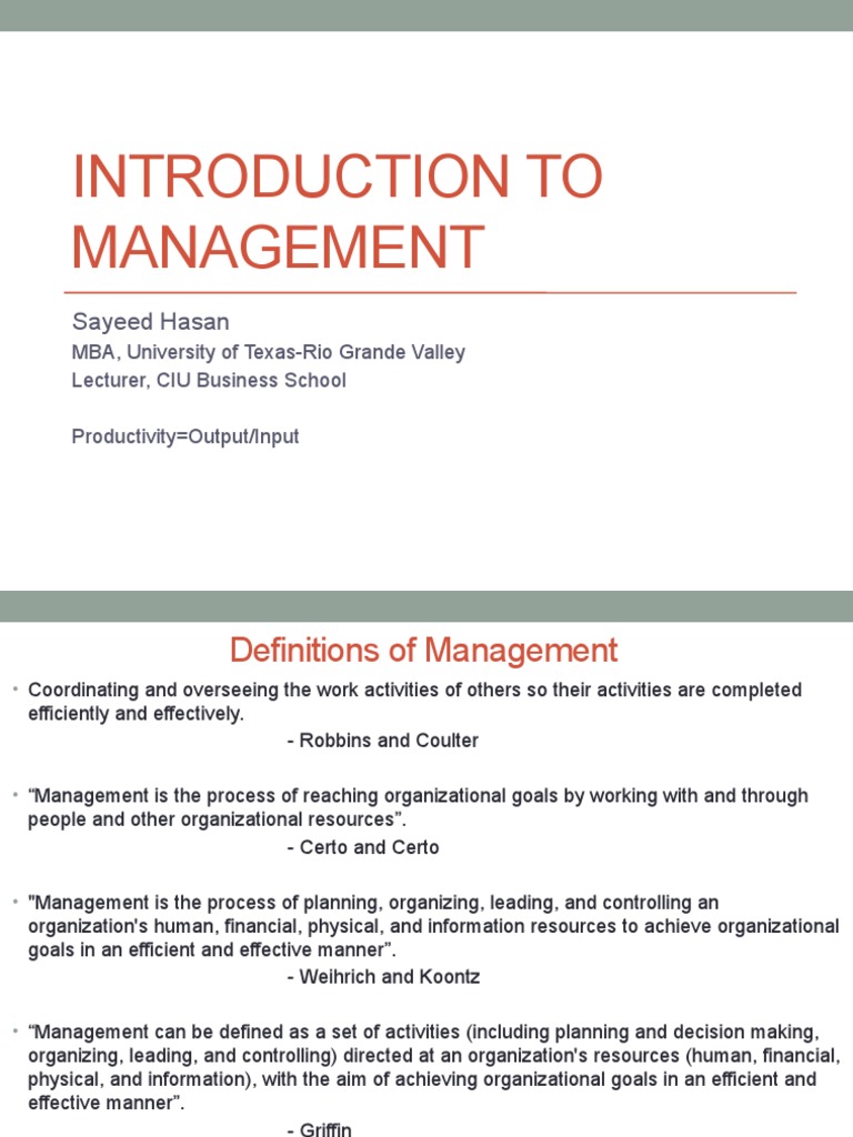 • The concepts of managerial effectiveness and efficiency are obviously related; and both are