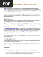 • Elaborate on the quality control for Fabrics, QC in Garment