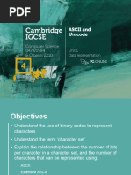 – Uses 7 bits for each character. It was designed to represent ASCII