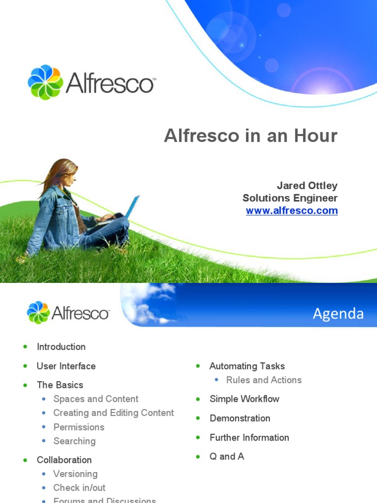 ● Accessible – Alfresco Web Client, FTP, WebDAV, CIFS (network