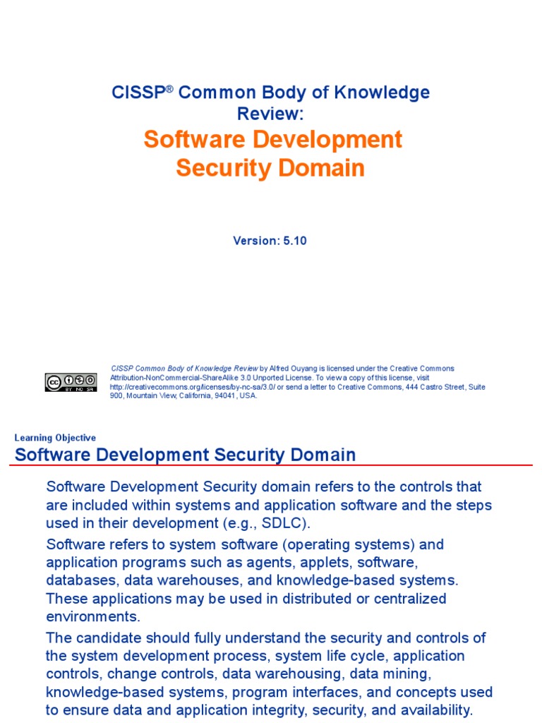 Software Development Security Domain: Cissp Common Body of Knowledge Review