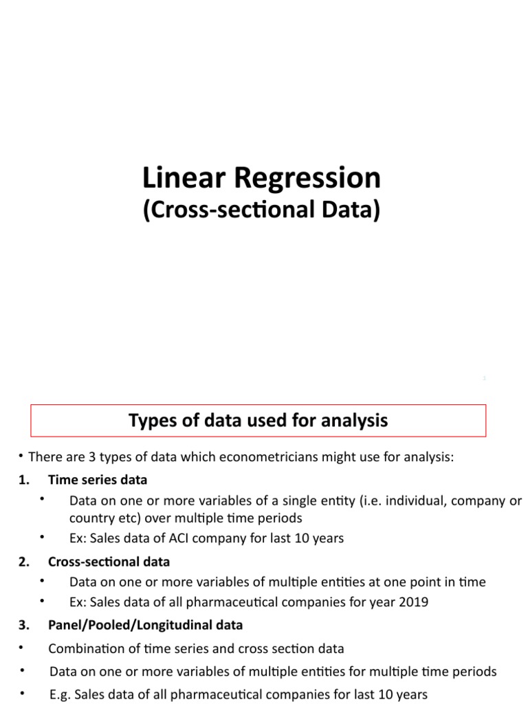 • Data on one or more variables of a single entity (i.e. individual, company or