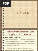 The document discusses different models for the software development life cycle (SDLC), including the waterfall model which is sequential in nature, the iterative model which allows for more feedback and iterations, and the RAD (rapid application development) model which focuses on rapid prototyping and getting feedback from users early in the process.