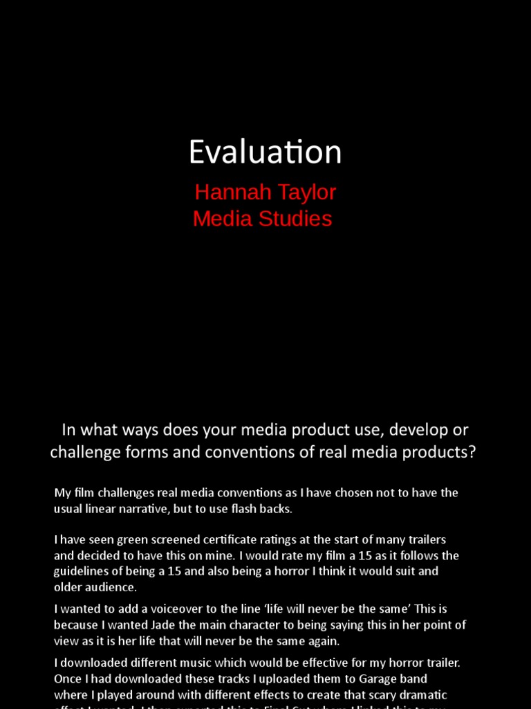 PowerPoint – I used this to display my evaluation as well as my directors commentary so a