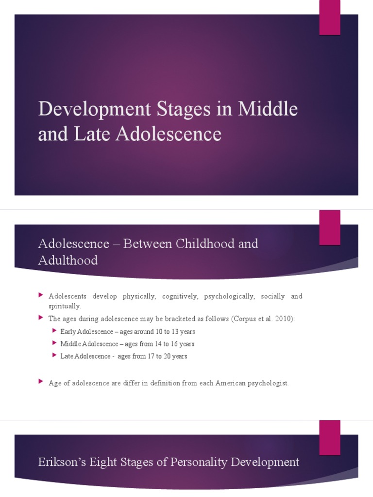 The ages during adolescence may be bracketed as follows (Corpus et al. 2010):