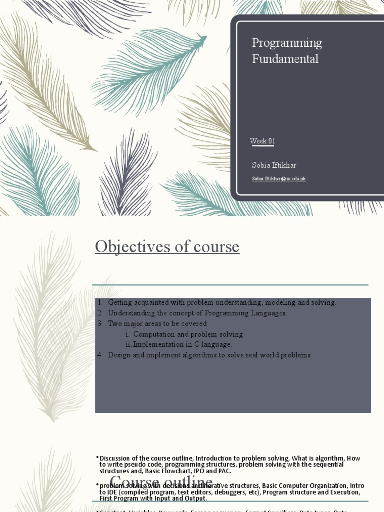 •Discussion of the course outline, Introduction to problem solving, What is algorithm, How