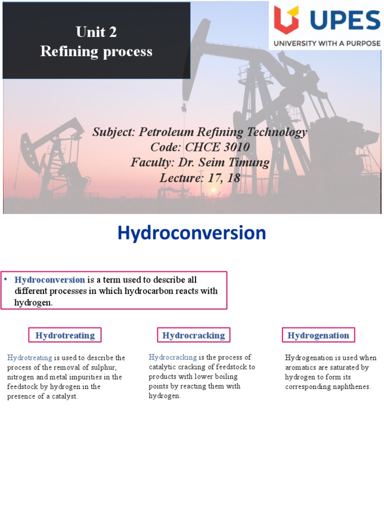 • Hydrogenation removes impurities in the feed such as sulfur, nitrogen and metals. Cracking
