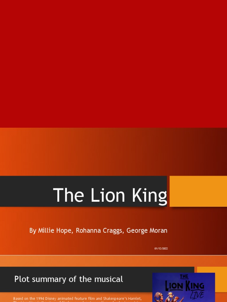 Based on the 1994 Disney animated feature film and Shakespeare’s Hamlet,