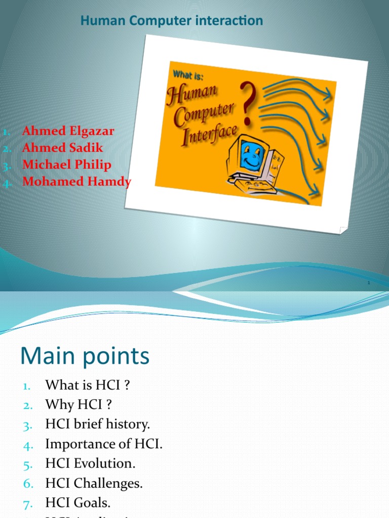 o HCI is also sometimes referred to as man–machine interaction (MMI) or computer–human interaction (CHI)